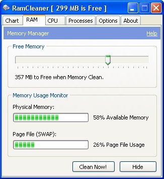 RamCleaner პროგრამა რომელიც აუმჯობესებს და ასწრაფებს კომპიუტერის მუშაობის ხარისხს, მეხსიერების ეფექტური გამოყენების ხარჯზე